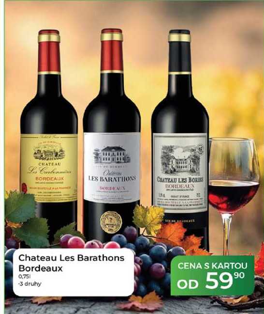 Aktuální slevu na Chateau Les Barathons Bordeaux 0,751 zjistíte jednoduše nastavením Strážce slev .