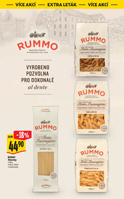 - Rummo semolinové těstoviny 500g, vybrané druhy v akci, se slevou 18%, za 44,90 Kč .